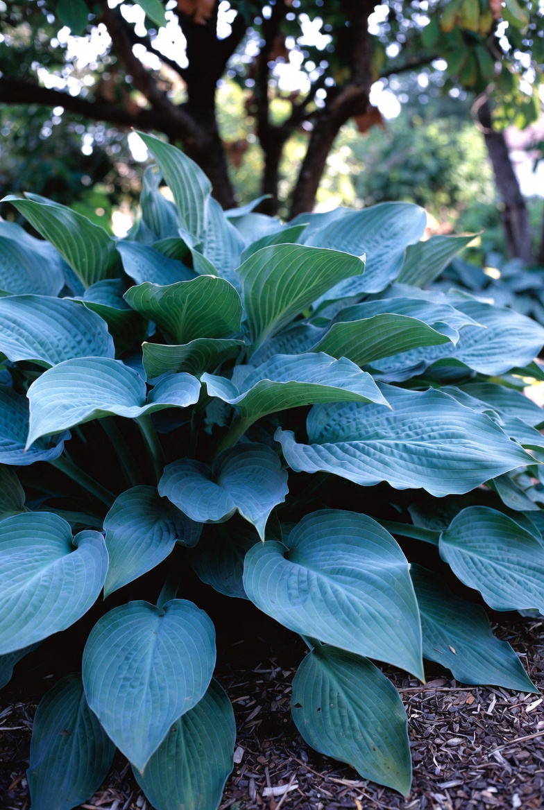 Хоста Halcyon в саду — плотный голубой куст