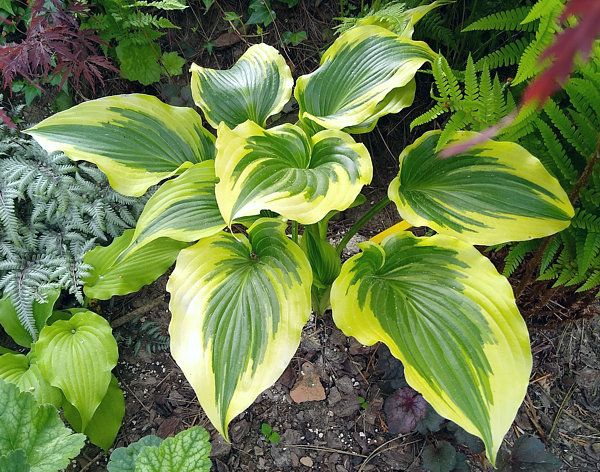 Высота: 30-35 см (М)Листья очень плотные, восковые, сизо-синие с широкой желто-кремовой каймой. Плотные листья не по зубамам улиткам и слизням.Цветы лавандовые. Солнце-полутень.Спорт: H. First Frost. Оригинатор: Marco Fransen (Paul Vernooij)