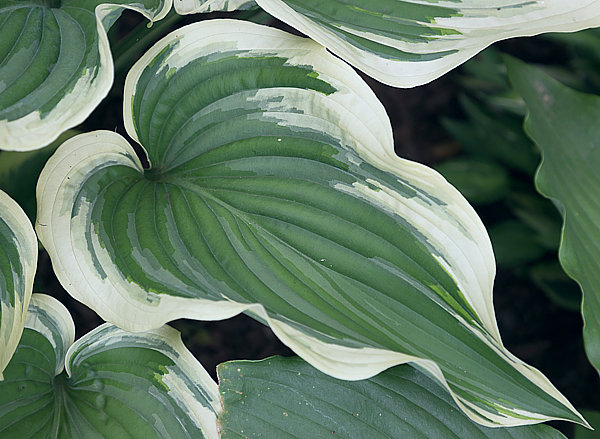 Прямостоячие, зеленые листья с волнистой огненно-желтой каймой, которая быстро становится белой. Скорость роста от среднего до медленного.